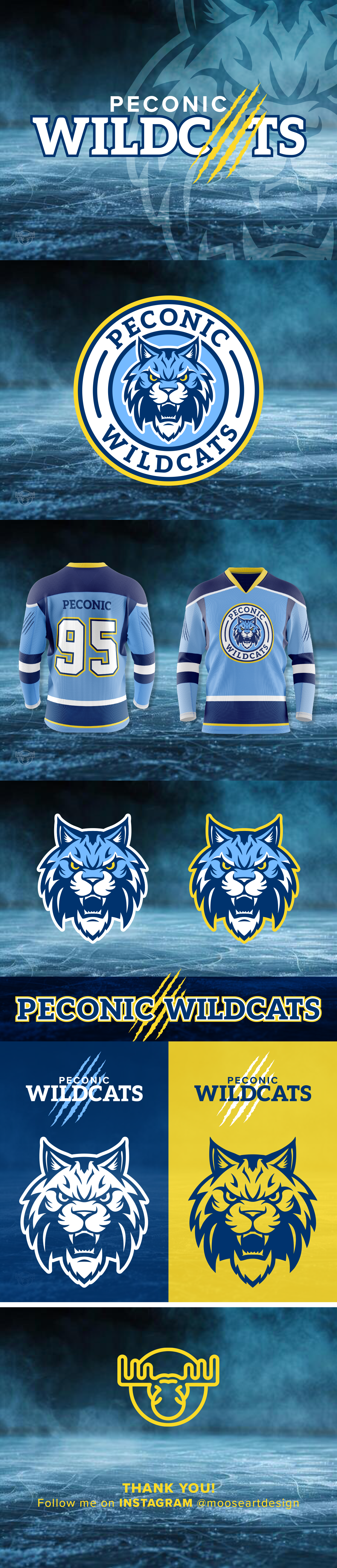 The redesigned Peconic Wildcats logo brings a bold, modern edge to the program’s identity, combining fierce expression, clean linework, and dynamic colorways that stand out across any uniform or merchandise application. The updated marks balance intensity and approachability, capturing the spirit, attitude, and competitive energy of the Wildcats with refined detailing and versatile styling. This refreshed branding is crafted for high-impact visibility on ice, apparel, signage, and digital platforms. The complete artwork package, including both primary logo versions and supporting elements, is now available for sale. If you're looking to elevate your team or organization with a strong, professionally executed mark, this set is ready for use.